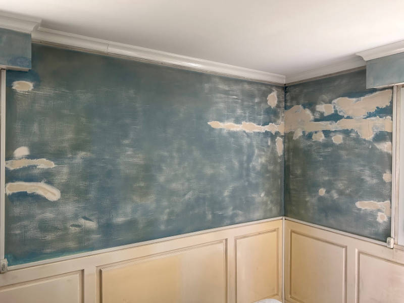 Une ancienne peinture défraîchie et abimée par les mouvements des murs (fissures)